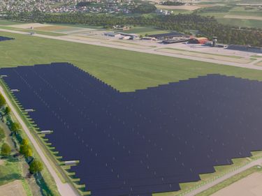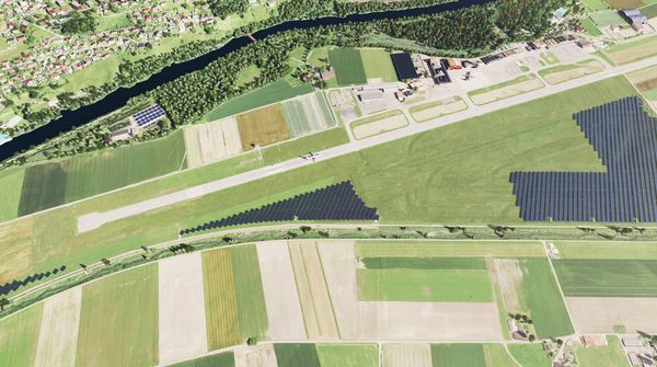 Die Freiflächen-Solaranlage wird auf dem eingezäunten Areal des Flughafens Bern-Belp entstehen, auf den heutigen Graspisten und auf landwirtschaftlich genutztem Boden.