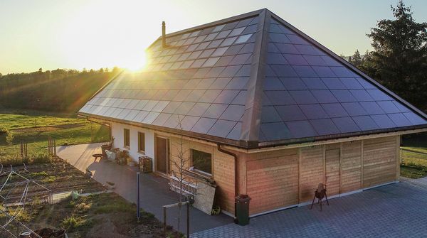 Wie sein Name bereits verrät, wurden für die Isolierung des Gebäudes echte, ca. 8o cm dicke Strohballen verwendet. Diese dämmen nicht nur höchst effizient, sondern sind im Gegensatz zu Alternativen wie Styropor oder Steinwolle auch sehr ökologisch. Neben der Isolation ist auch die Energiegewinnung des Strohballenhauses nachhaltig. Die b+s elektro telematik ag aus dem Netzwerk der BKW Building Solutions installierte eine Photovoltaikanlage, die sich über alle vier Seiten des Dachs erstreckt und dieses fast autark macht. 90 Prozent der benötigten Energie kommen beim Strohballenhaus von der eigenen Anlage, nur etwa 10 Prozent werden vom Elektrizitätswerk dazugekauft. Der Zukauf ist nötig, da im Dezember und Januar die Sonne nicht genügend scheint. Neben der Photovoltaikanlage, die pro Jahr rund 23'300 Kilowattstunden Strom erzeugt, sind auf dem Dach zusätzlich Solarthermie-Module verbaut. Sie sorgen für Warmwasser und die Beheizung des Hauses.