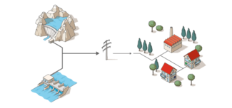 Bis Anfang des 20. Jahrhunderts versorgen erste Laufwasserkraftwerke über einzelne Stromleitungen nahe gelegene Verbraucherinnen und Verbraucher mit Strom. Die Kraftwerke liefern sogenannte Bandenergie und decken den Grundbedarf an Strom ab. Bei Problemen in der Produktion oder Verteilung bleibt der Strom für Mensch und Maschinen jedoch aus.