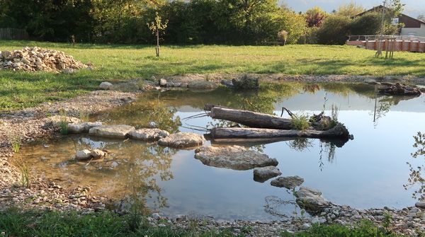 Ein weiteres Ziel des Projekts war die Schaffung einer Landschaftsfläche mit hohem biologischem Wert. Umgesetzt wurde dieses Vorhaben auf einem vormals nur landwirtschaftlich genutzten Grundstück der Gemeinde Courtételle, das nur eine geringe ökologische Vielfalt aufwies. Heute befindet sich dort eine sogenannte Pionierzone – ein Lebensraum mit hoher Biodiversität. Er umfasst einen abgedichteten Teich, Steinmauern, Holzstapel sowie eine Blumenwiese mit lokalen Wiesenpflanzen und einzelne Baumgruppen. Ergänzt werden diese durch neugeschaffene Überschwemmungsterrassen an den Böschungsfüssen des Flusses. «Solche natürlichen Umgebungen sind an den Ufern der jurassischen Wasserläufe sehr selten geworden», sagt Charlotte Mertenat von BIOTEC. «Umso bedeutsamer ist es, dass wir beim Ruisseau de Châtillon eine Naturzone und damit auch einen Rückzugsort für Wildtiere schaffen konnten.»